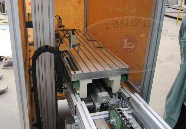 高鐵門自動(dòng)裝配流水線技術(shù)優(yōu)勢:針對高鐵門驅(qū)動(dòng)部分,尺寸長短不一且很沉重,不好定位,設(shè)計(jì)一套能自動(dòng)流動(dòng)工裝小車,小車采用一組帶手動(dòng)離合驅(qū)動(dòng)小車,一組被動(dòng)小車,且產(chǎn)品放到主驅(qū)動(dòng)小車,通過一個(gè)升降壓板壓緊產(chǎn)品的底板(可適應(yīng)2-6mm的底板),另一組被動(dòng)小車依產(chǎn)品長度調(diào)到合適位置,由升降壓板壓緊定位好進(jìn)行產(chǎn)品組裝,組裝一部分后,由輸送帶送至下一站,進(jìn)行下一道工藝組裝,一共進(jìn)行9道工序組裝后,產(chǎn)品取下,工裝小車由提升機(jī)送至下層返回輸送帶,從另一頭起點(diǎn)提升循環(huán)使用。