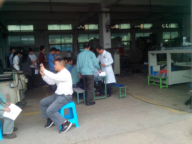 今天公司組織了全體員工的年度體檢活動,把關愛員工的措施進一步落實。醫院體檢車直接開到公司對全體員工進行體檢。當員工井然有序地排隊抽血、拍片、查血壓等項目時,也深深體會到公司的愛。我們將會銘記公司這份愛,在工作當中認真付出,為客戶提供高品質、高性價比的噴涂設備、自動化生產線,最大限度地達到客戶滿意。