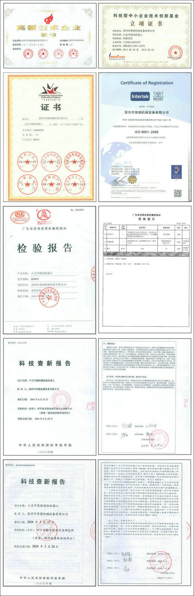 2.自主研發且通過深圳市自主創新產品認定并獲得國家科技部創新立項的高性能噴涂機器人。