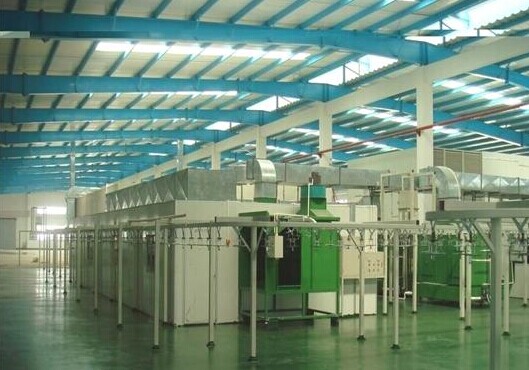 —電加熱式烘干、固化組合烘道;外形尺寸,18000×5600×4350mm(L×W×H);插板式拼裝結構,內壁為滲鋁鋼板,外壁為冷軋鋼板,上送風上回風熱風循環方式。1座。—粉末回收裝置:8000立方米/小時風量,小旋風+濾芯回收。1套。