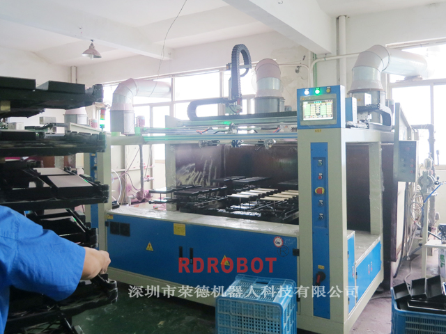 榮德往復式自動噴涂設備可自動噴粉、噴漆、噴油、噴膠等不同涂料的不規則工件的表面涂裝作業。可應用于木盒、木板、木椅等木器產品及紅酒盒、茶葉盒等高檔禮品盒。