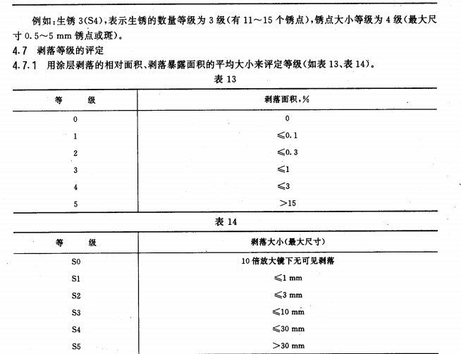4.如漆膜有數種破壞現象,評定等級時,應按按破壞最嚴重的一項評定。